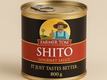 A family-sized portion of Farmer Tom's Shito, offering rich, savory heat in a convenient 800g tin.